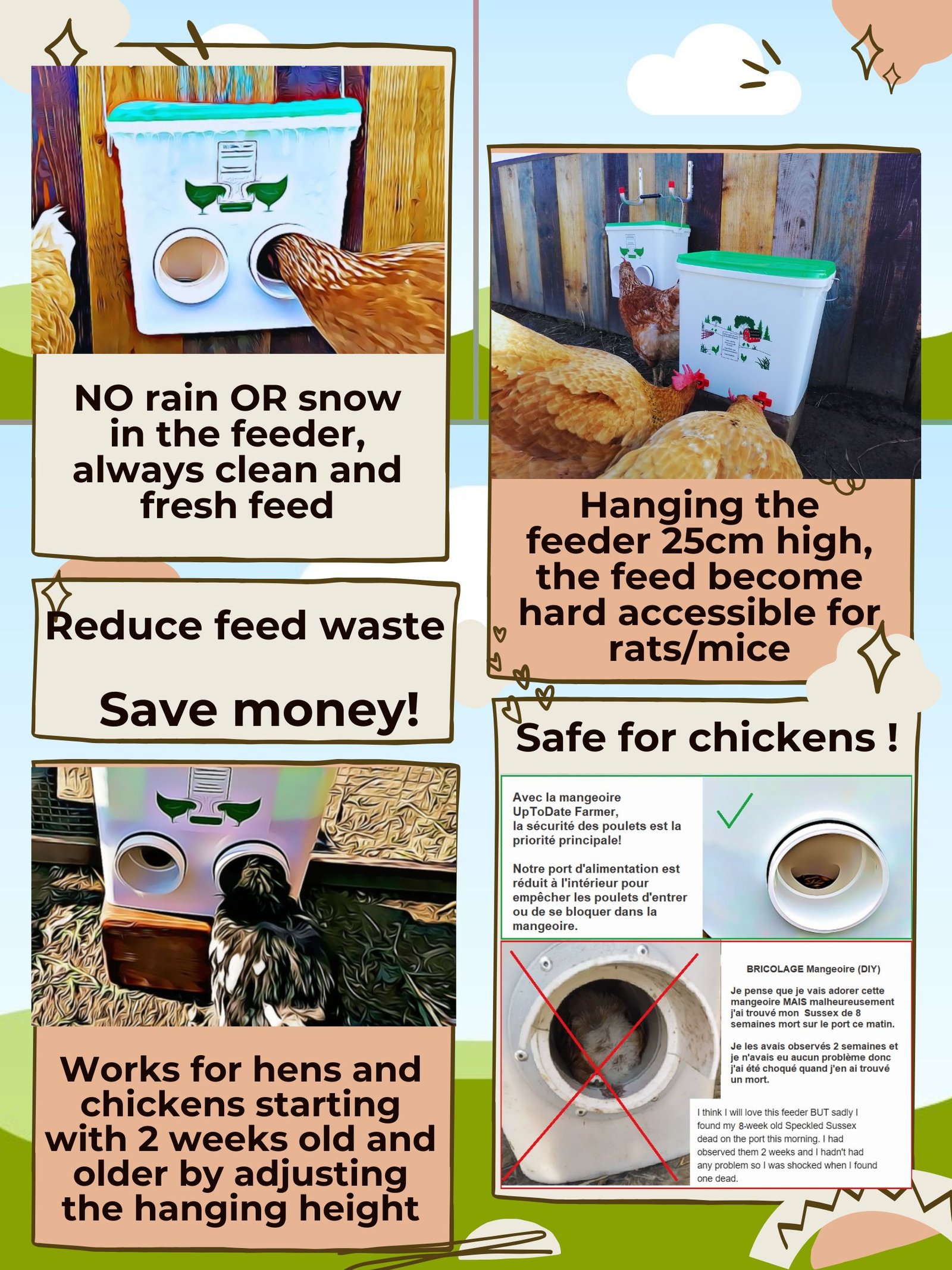 👍 Save your time- 10l/7kg Gravity feeder needs to be refilled only once a week for almost 10 hens;